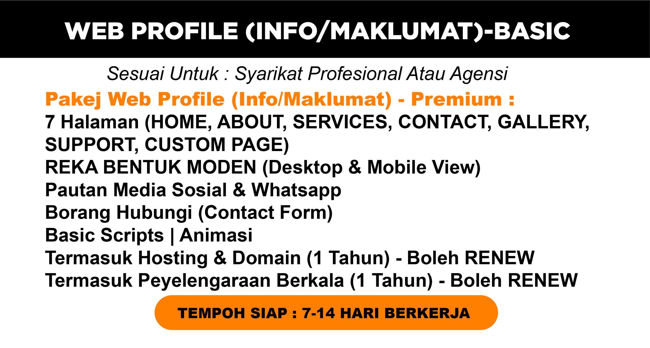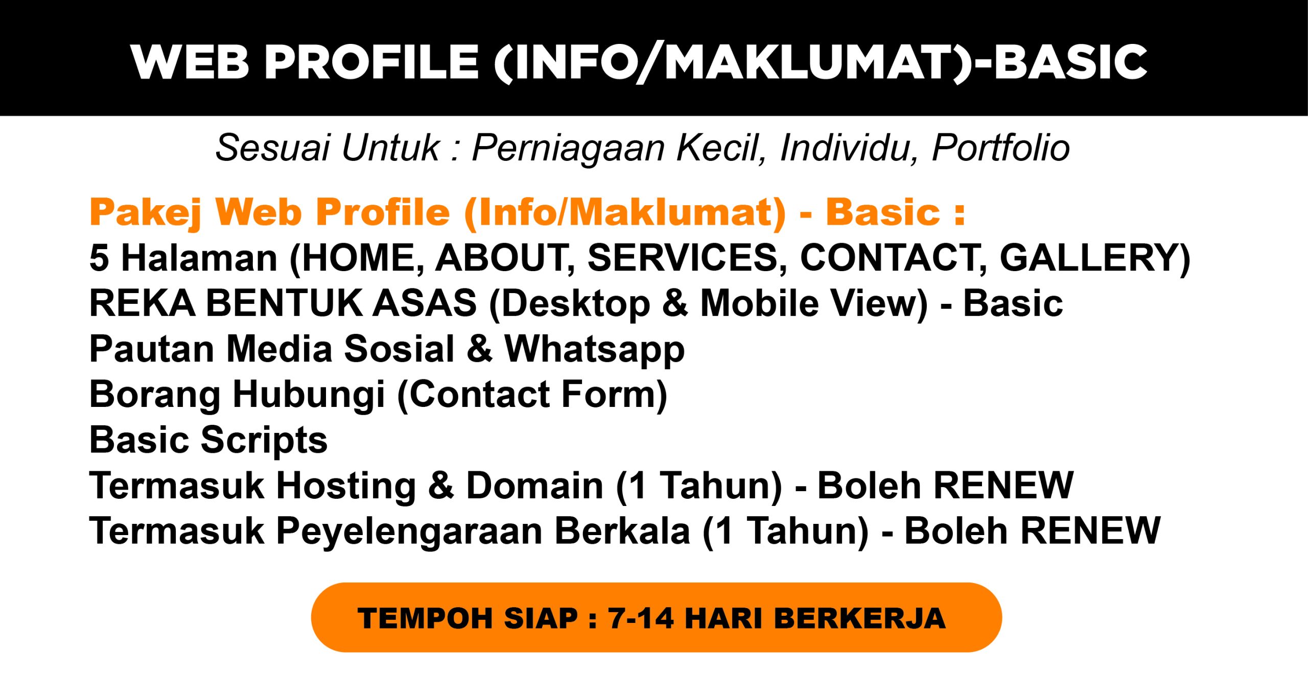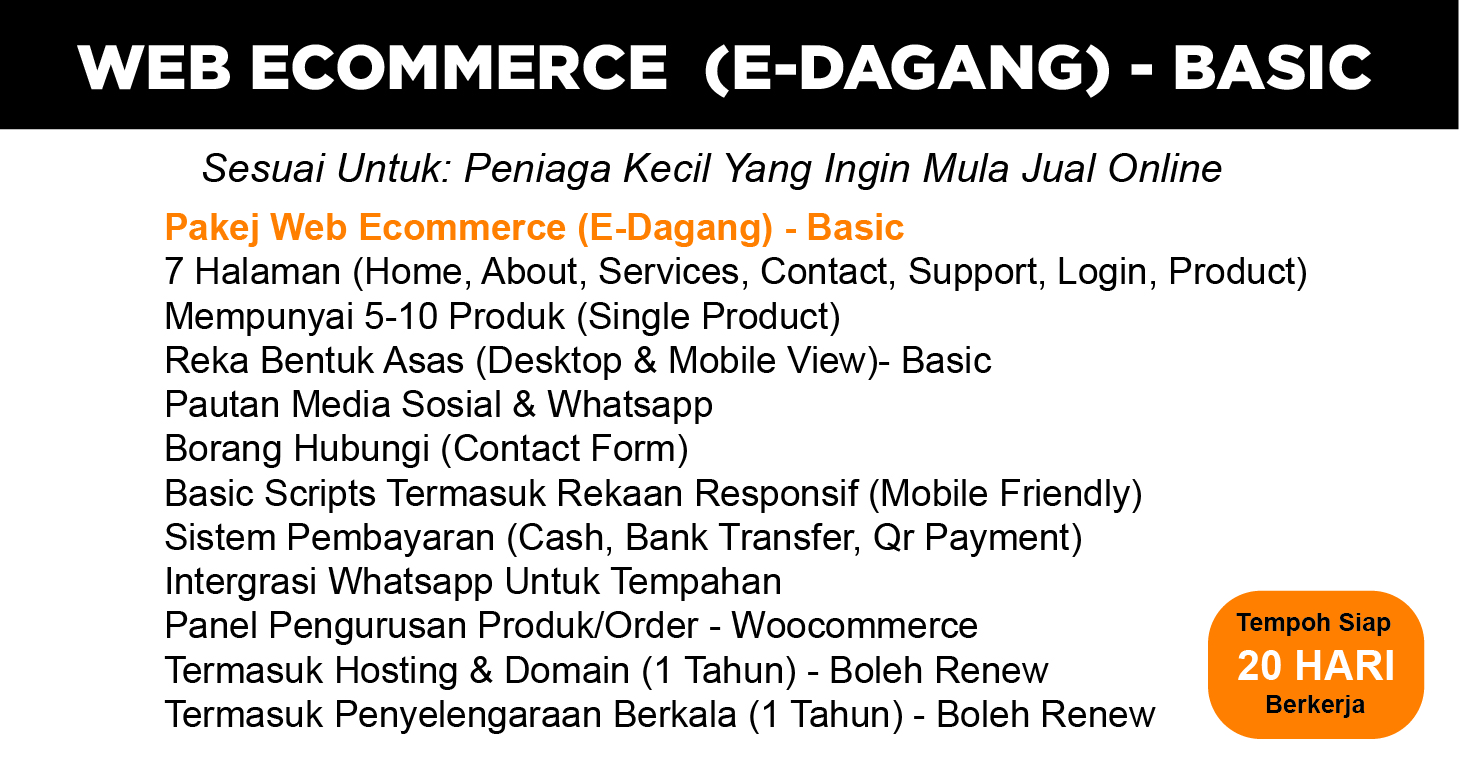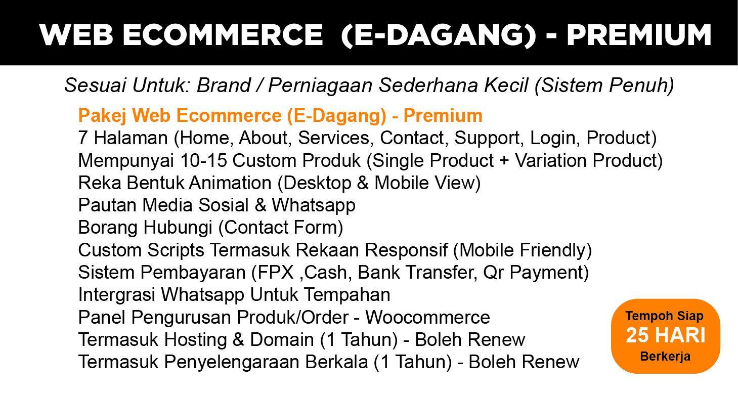 Sebarang penambahan baharu seperti produk, halaman (page), atau maklumat selepas website disiapkan adalah tidak dibenarkan, kecuali dengan caj tambahan yang akan dikenakan.